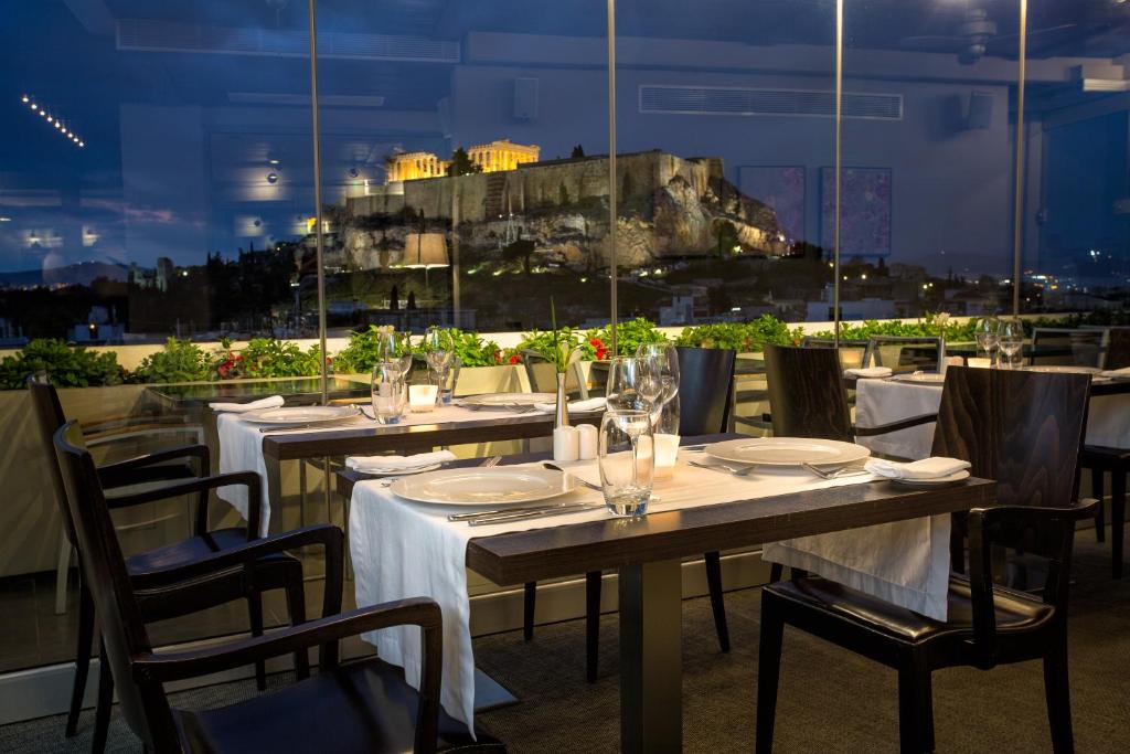• Rooftop restaurant with stunning views of the Acropolis and the city.