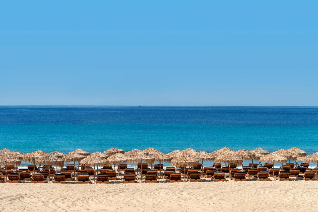The resort boasts beautifully appointed rooms and suites, each thoughtfully designed to provide the utmost in comfort and style. Guests can indulge in delectable Mediterranean cuisine at the on-site restaurant, savor refreshing cocktails at the bar, and unwind in the serene ambiance of the Aegean Sea.