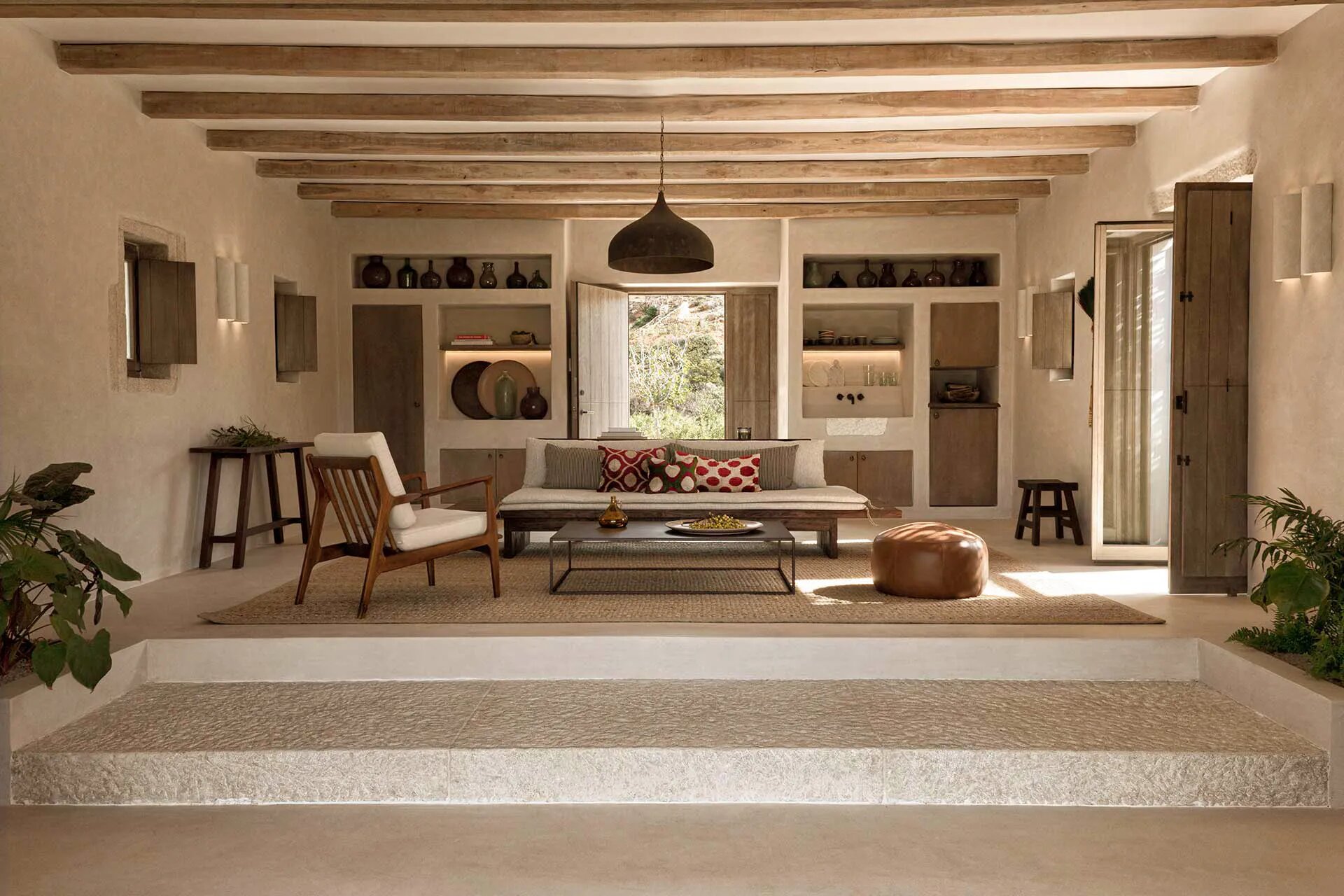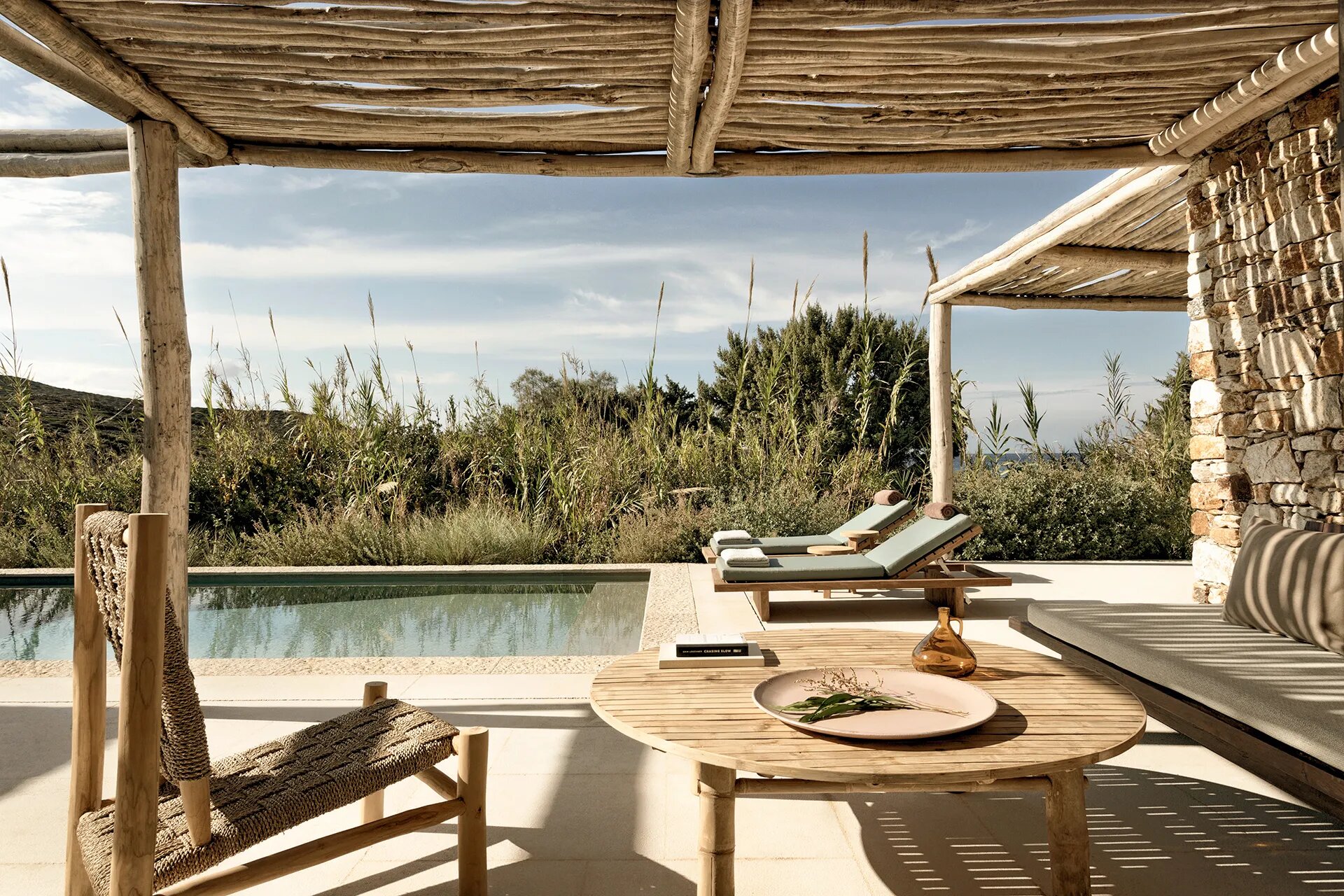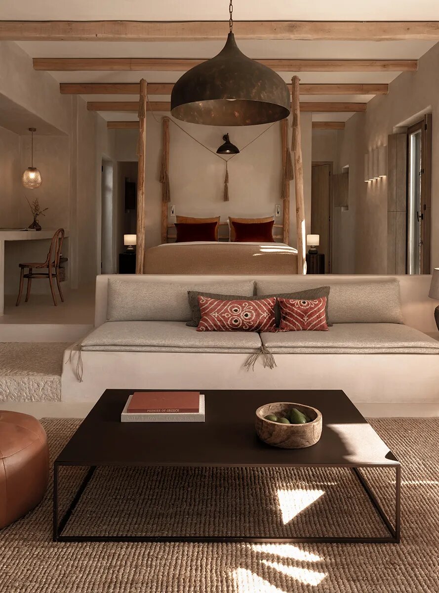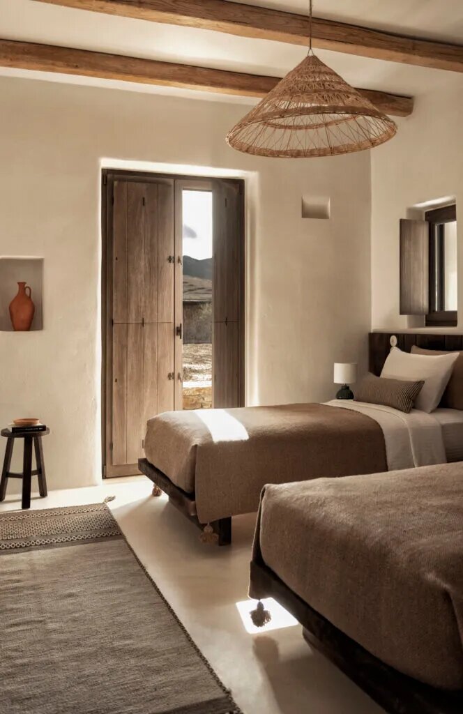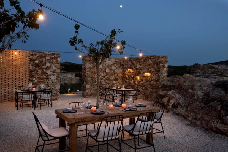 Nestled within a 30-acre expanse of hills, ancient ruins, rocky outcrops, and sandy dunes overlooking the enchanting, untouched Livadia beach, this extraordinary sanctuary consists of 16 discreet private residences meticulously designed to harmonize with the island’s natural beauty and cultural heritage.